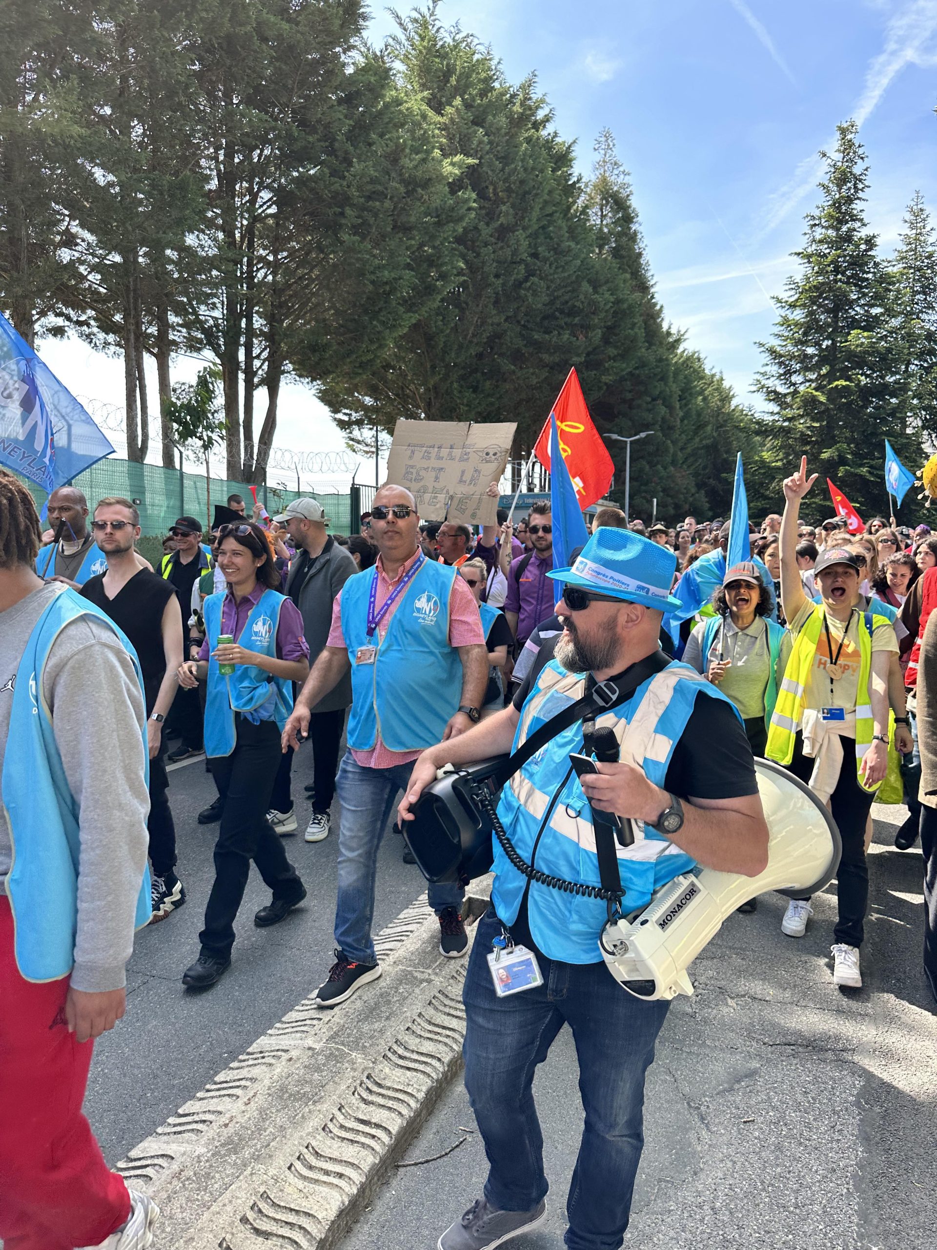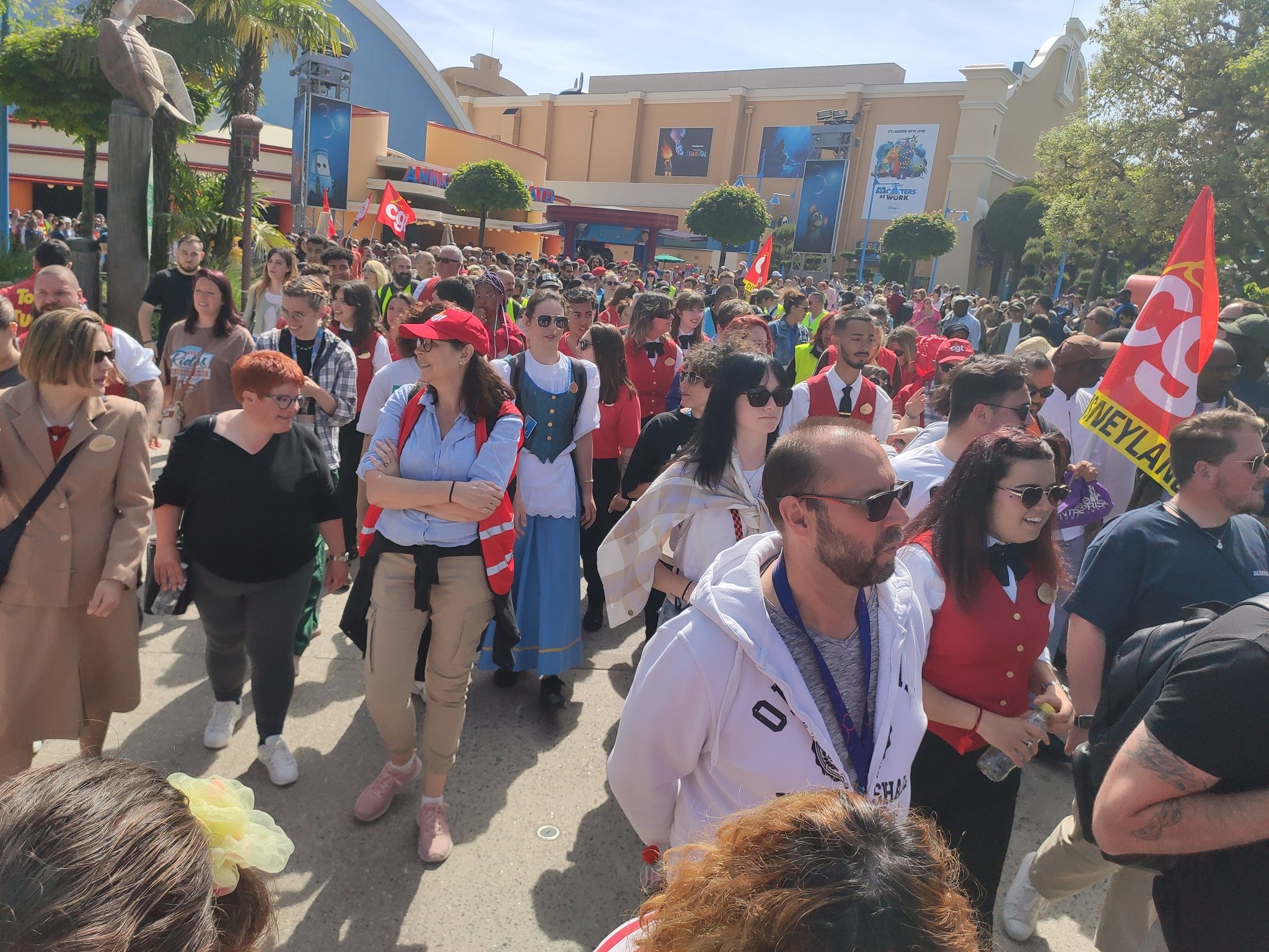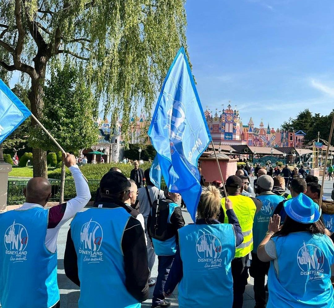 Emmenés par plusieurs syndicats, des centaines de Cast Members se mobilisent aujourd'hui, rassemblés au Parc Disneyland, pour protester contre leurs faibles rémunérations, l'organisation de leurs plannings et le manque d'écoute de la direction de Disneyland Paris. pic.twitter.com/wSRR0X1Fva
