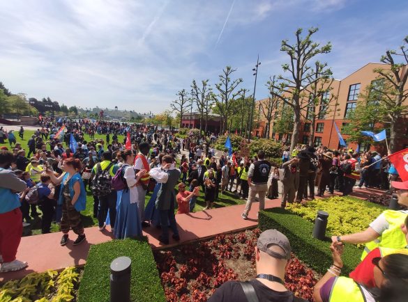 Ce mardi 30 mai 2023, des centaines de Cast Members ont répondu à l’appel général de l’intersyndicale du Resort pour se mobiliser une nouvelle fois. Plus de 1000 employés étaient réunis ce matin dans le royaume de Mickey pour protester à nouveau contre leurs conditions de travail, la manque d’équité concernant leur rémunération qui ne suit pas par rapport à l’inflation et le manque d’écoute de la direction. Ce deuxième jour de grève a davantage impacté les opérations des Parcs de Disneyland Paris même si l’ensemble de la manifestation – des coulisses aux Parcs en passant par Disney Village et les Hôtels – s’est déroulé de manière tout à fait paisible et sans animosité (et même en musique !).